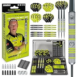 12,99 € (von Januar 12, 2026 23:56 GMT +00:00 - Mehr InformationenProduct prices and availability are accurate as of the date/time indicated and are subject to change. Any price and availability information displayed on [relevant Amazon Site(s), as applicable] at the time of purchase will apply to the purchase of this product.)WINMAU - Professioneller Spieler - Michael Van Gerwen MvG Geschenkset - 50-teiliges Profi Darts Set - Enthält 4 x Stiele, 4 x Flüge und Zubehör - 18g Weiche Spitze oder 20g Dartpfeile Metallspitze