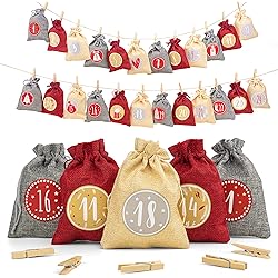 14,35 € (von November 26, 2025 13:00 GMT +00:00 - Mehr InformationenProduct prices and availability are accurate as of the date/time indicated and are subject to change. Any price and availability information displayed on [relevant Amazon Site(s), as applicable] at the time of purchase will apply to the purchase of this product.)Adventi Adventskalender zum Befüllen [24 Stück] Weihnachtskalender 2025 Jutesäckchen 15 x 12cm Groß, Weihnachtsdeko Tüten/Säckchen, Geschenktüten Weihnachten mit individuellen Designs (Rot)